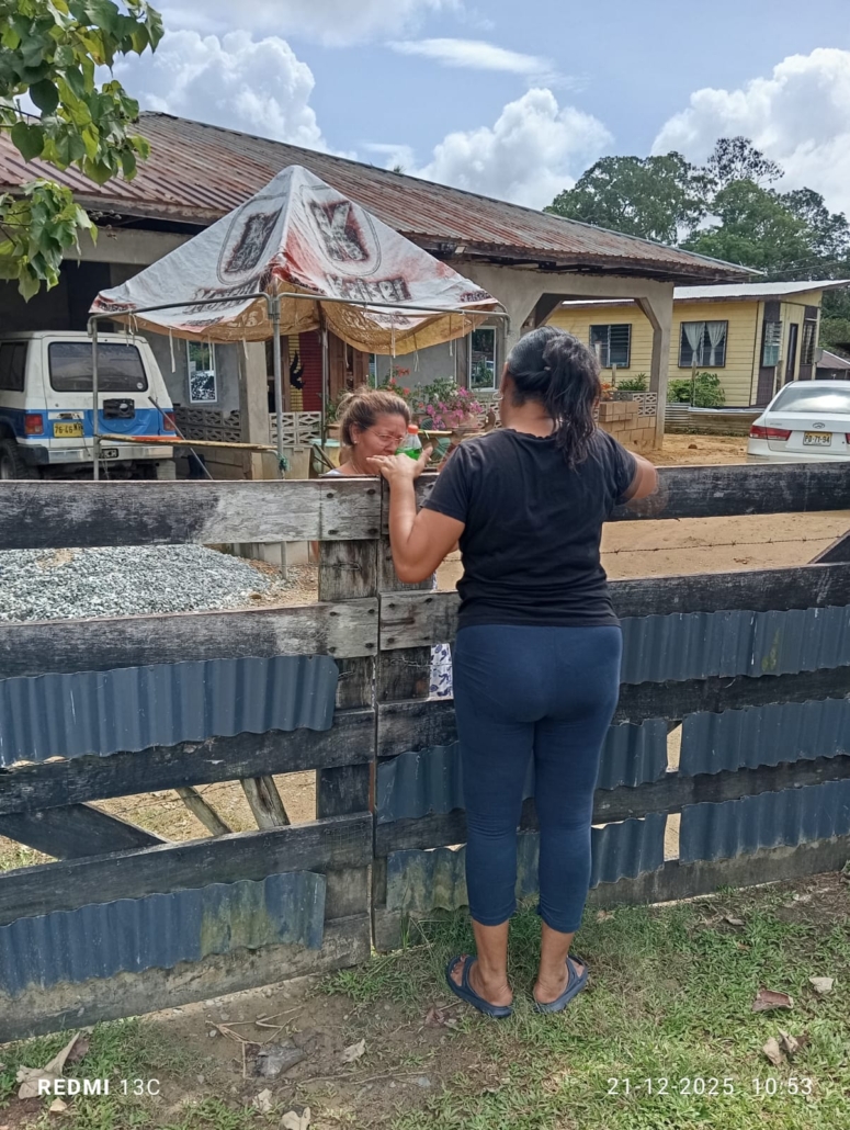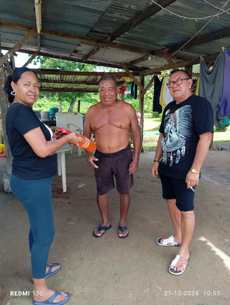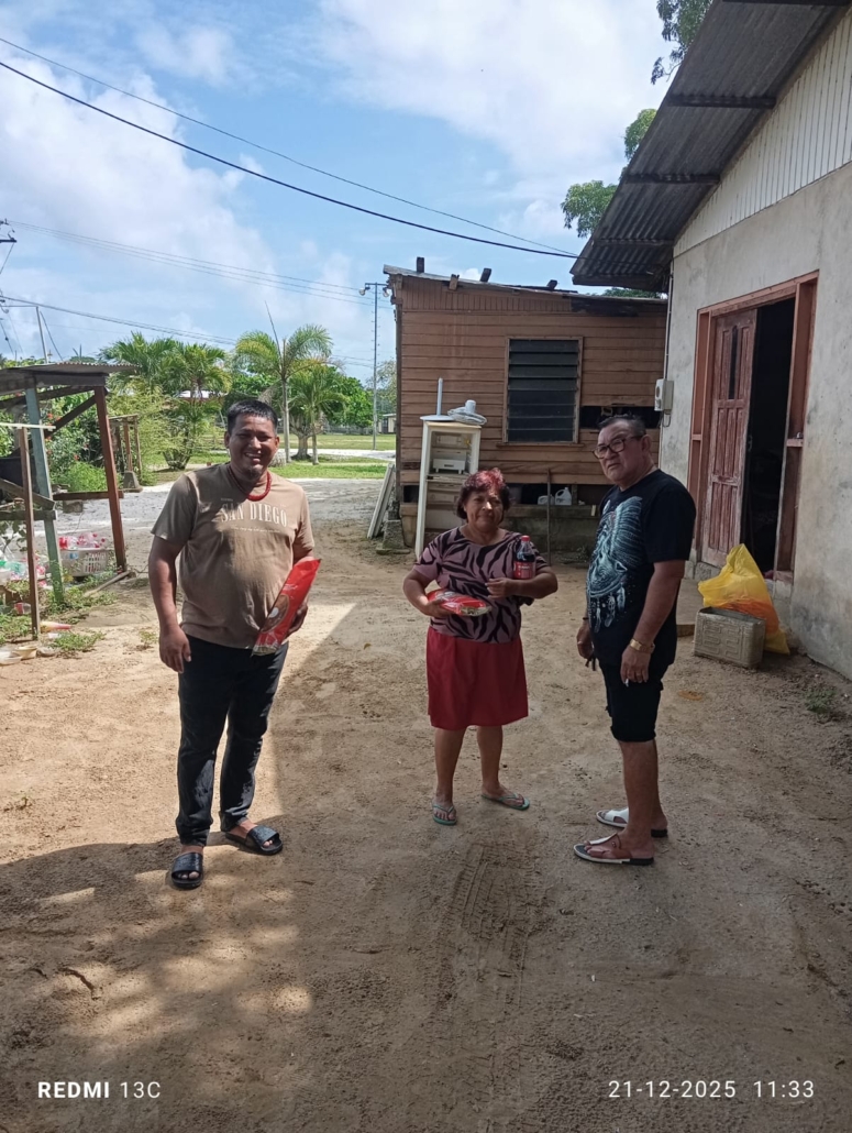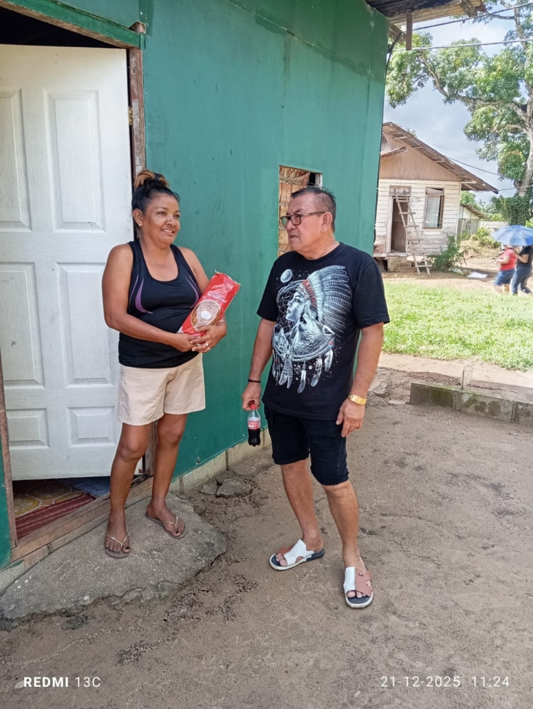 Kapitein Humphrey Tjon zet zijn nieuwe traditie voort om de oudjes van het dorp blij te maken met een kerstbrood.
