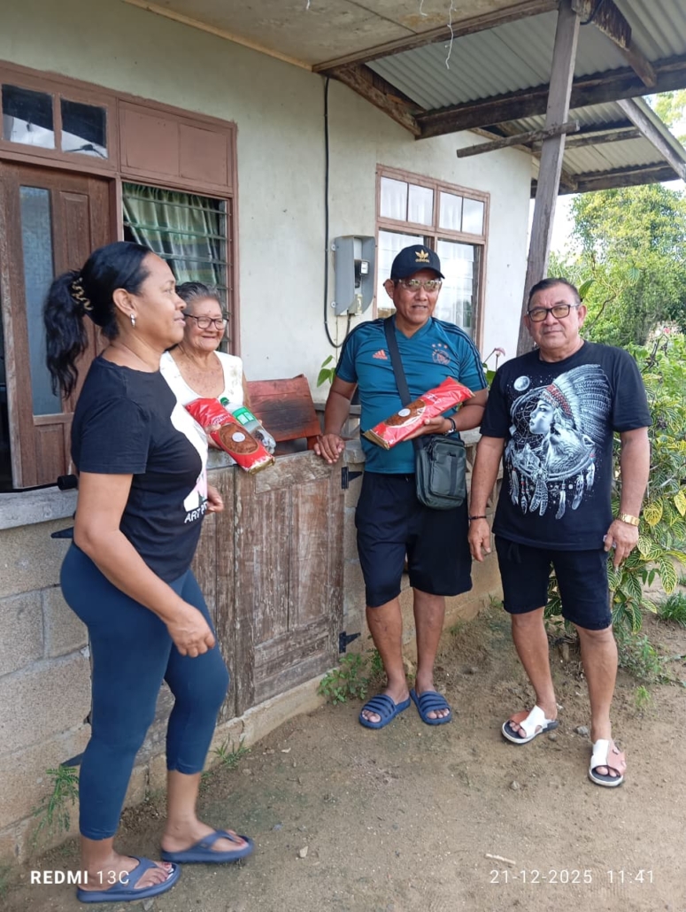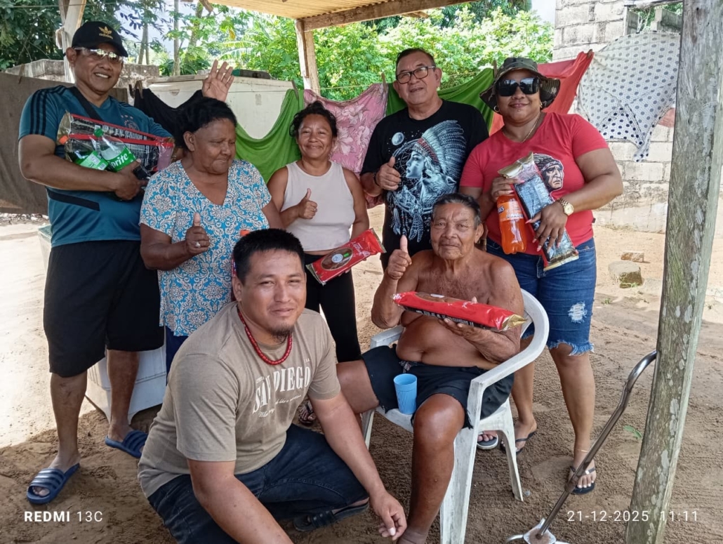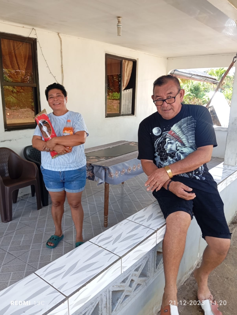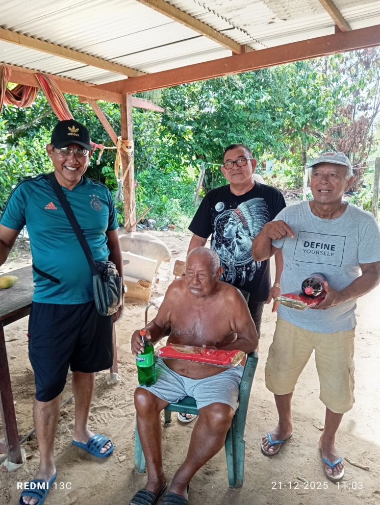 Kapitein Humphrey Tjon zet zijn nieuwe traditie voort om de oudjes van het dorp blij te maken met een kerstbrood.